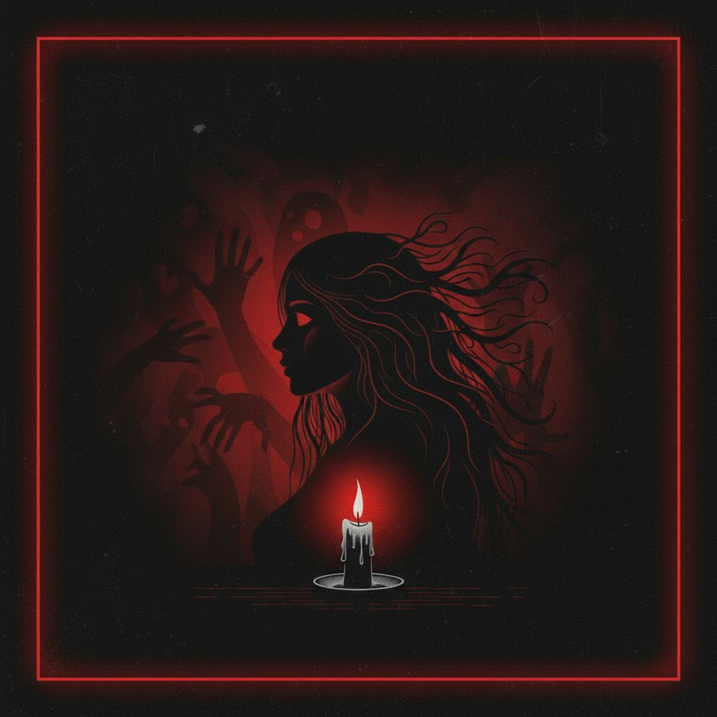 فضلت أنادي البنات بس ولا واحدة جاوبتني، مشيت في الظلام الجو كان بارد والهواء شديد وسخن وصوت الرياح يعوي ومرتفع كأني أسير بصحراء.. ضليت ماشية في الظلام، لين شوفت سيدة تضيء بعض الشموع في آخر الطرقة، حسيت أن مفاصلي جسدي كلها إنفلتت من بعضها.