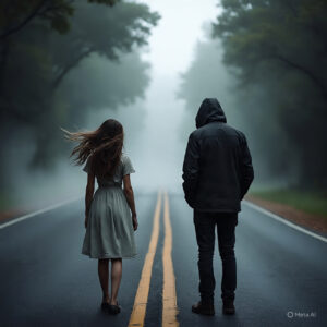 خرجتُ كالتائه، مكسورًا بين خيانة صديقي الذي سرق أفكاري وبين الطرد المهين. كانت الشوارع صامتة إلا من صدى خطواتي الثقيلة. وبينما أنفاسي تتثاقل، ظهرت هي من قلب الليل، وجه يقطع العتمة بجمال غامض، كأنها ملاك وشيطان في ملامح واحدة.